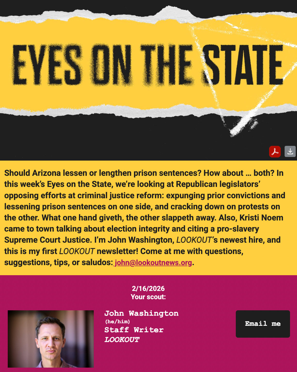 I’m now reporting for a fabulously exciting young nonprofit media outlet, Lookout. We focus on queer and BIPOC communities, but are open to any important story holding the powerful to account or shining a light. We’re ambitious, want to grow, and will be doing hard-hitting investigations and accountability work. I’ll be focusing on the Arizona statehouse while the legislature is in session. Outside of and during that reporting, I’ll be writing about immigration, the border, and extremism in Arizona and beyond.